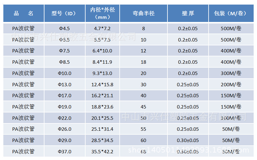 7.特 性:不含鹵素、耐摩擦V、耐酸、堿、潤滑油、無機鹽等、柔韌性好。UFW型波紋管波谷寬度是其它波型的3-5倍,有效地增加了電線與波紋管內壁的接觸面積,對電線PVC表皮起到了更好的保護作用,獨特的加強筋設計,使波谷變得更平坦,也易于現有的卡扣配合緊湊。
